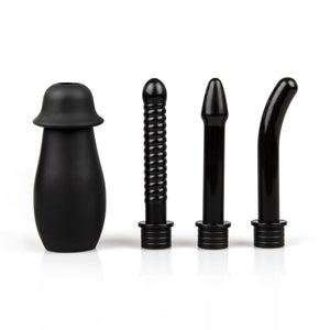 Enhance your backdoor play with the Douche Set featuring 3 interchangeable nozzles for cleansing and stimulation.