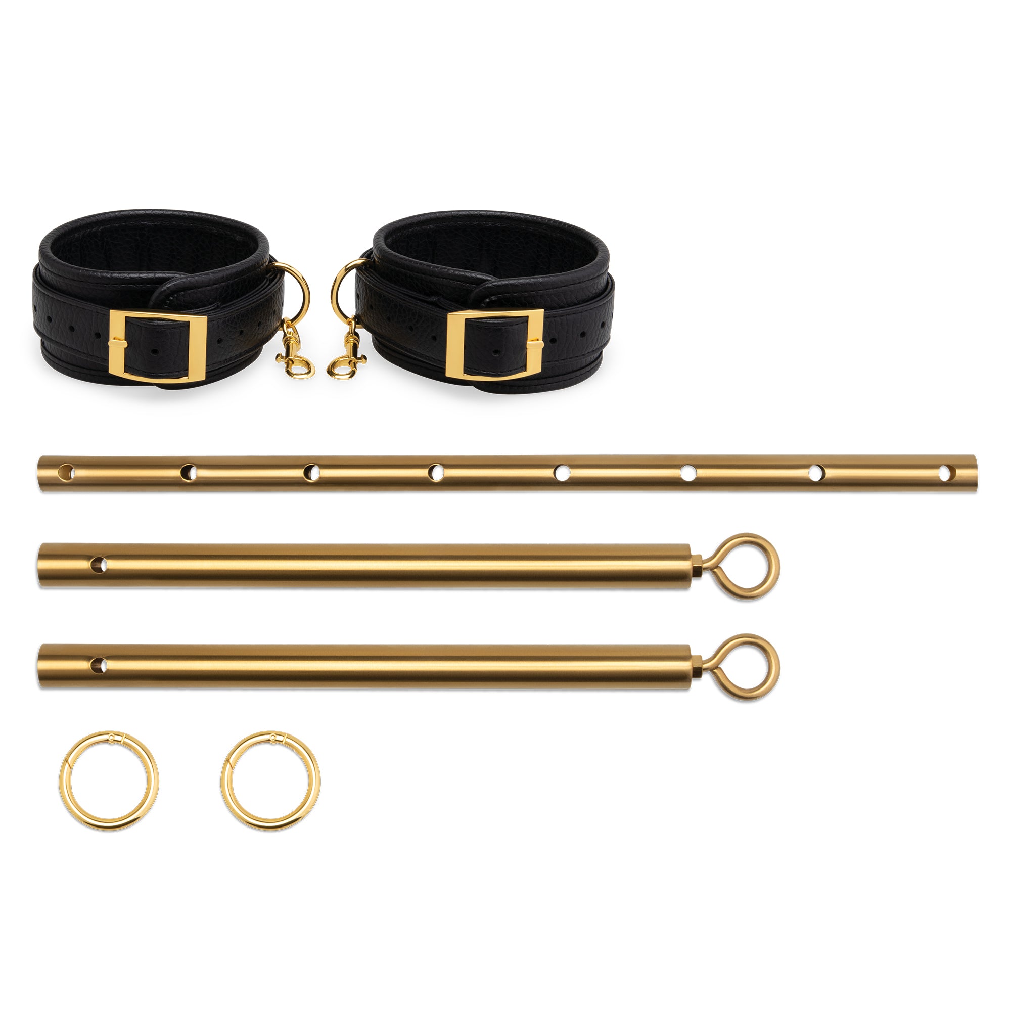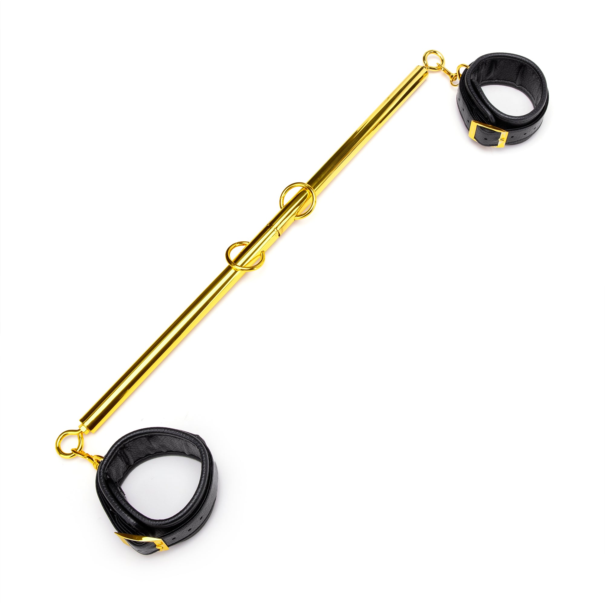 Command attention in the bedroom with the Solid Gold Expandable Spreader Bar Set, a luxury restraint accessory designed for style and control. The shimmering gold finish adds elegance, while the adjustable bar extends from 24 to 36 inches to lock in the perfect angle. PU leather cuffs deliver a snug, body‑safe fit with quick‑release versatility, and their detachable design allows for multiple bondage scenarios. Crafted from nickel‑free metal for durability, this premium spreader bar blends sophistication, comfort, and secure restraint—ideal for both beginners and experienced BDSM players.