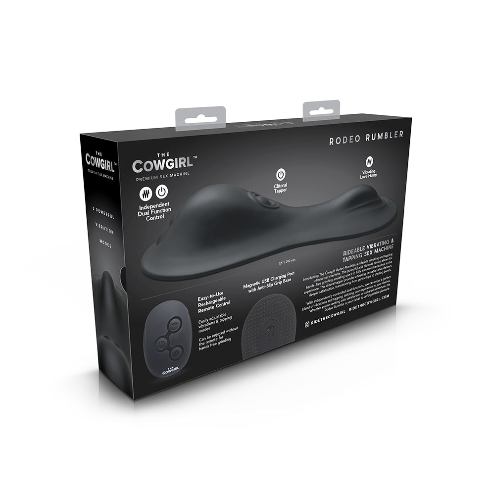 The Rodeo Rumbler is a portable, lightweight, flexible grinding sex machine with a remote control that offers a total hands-free experience. Offering vibration and tapping sensations, there is plenty to discover on this ride. It features a magnetic USB charging port and an anti-slip grip base for added convenience and stability.